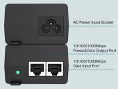Ports: 1x 10/100/1000Mbps RJ45 data-in port, 1x 10/100/1000Mbps RJ45 power+data-out port, 1x AC socket
