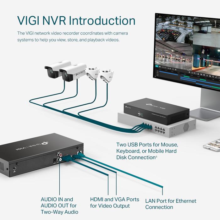 Τα καταγραφικά της σειράς VIGI από την TP-LINK συνδέονται με το σύστημα καμερών σας, επιτρέποντας της παρακολούθηση (live & playback) και την αποθήκευση των βίντεο που καταγράφονται.