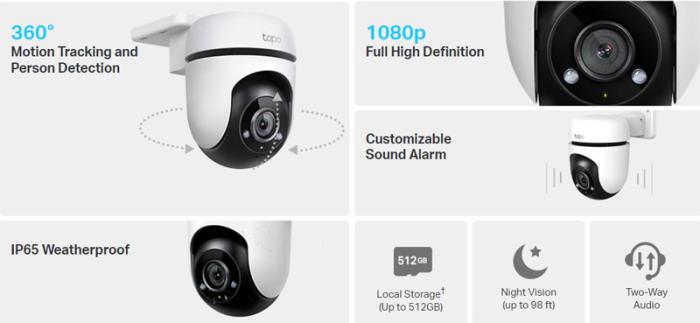 Smart κάμερα εξωτερικού χώρου της TP-Link με εικόνα ανάλυσης 1080p και ενσωματωμένο μικρόφωνο και ηχείο που επιτρέπει την αμφίδρομη μεταφορά φωνής και ήχου. Υποστηρίζει λειτουργία νυχτερινής όρασης με ασπρόμαυρη εικόνα για την παρακολούθηση ακόμη και στο σκοτάδι.