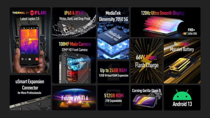 ULEFONE smartphone Power Armor 18T Ultra, 6.58", 12/512GB, 5G, 9600mAh, IP68/IP69K, μαύρο