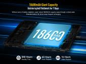 Τροφοδοτείται από μπαταρία χωρητικότητας 18600mAh που προσφέρει μεγάλη αυτονομία, και η φόρτιση της γίνεται μέσω θύρας USB-C. Επιπλέον, υποστηρίζει λειτουργία powerbank, που σας επιτρέπει την φόρτιση άλλων συσκευών, όπως earbuds και smartphone.