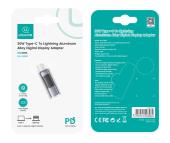 USAMS αντάπτορας Lightning σε USB-C US-SJ681 με οθόνη, 30W, γκρι