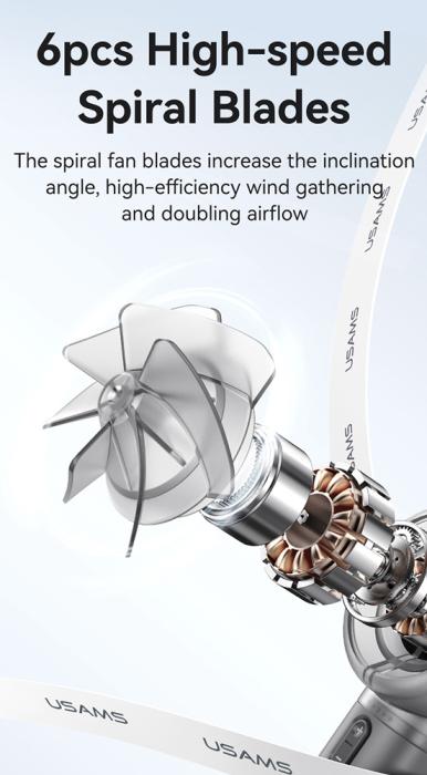 Μίνι φορητός ανεμιστήρας της Usams με 5 επίπεδα ταχύτητας του αέρα, που σας επιτρέπουν την προσαρμογή της ροής της ταχύτητας του αέρα ανάλογα με τις ανάγκες σας
