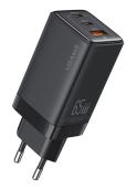 USAMS φορτιστής τοίχου US-CC180, USB & 2x USB-C, 65W PD, GaN, μαύρος
