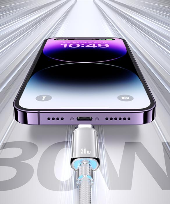 Καλώδιο φόρτισης και μεταφοράς δεδομένων Lightning σε USB-C της Usams. Υποστηρίζει φόρτιση με απόδοση έως 30W και μεταφορά δεδομένων με ταχύτητα έως 480Mbps.