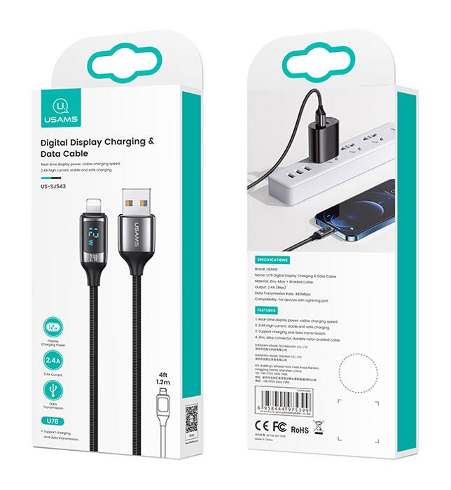USAMS καλώδιο Lightning σε USB US-SJ543, 2.4A, 1.2m, μαύρο