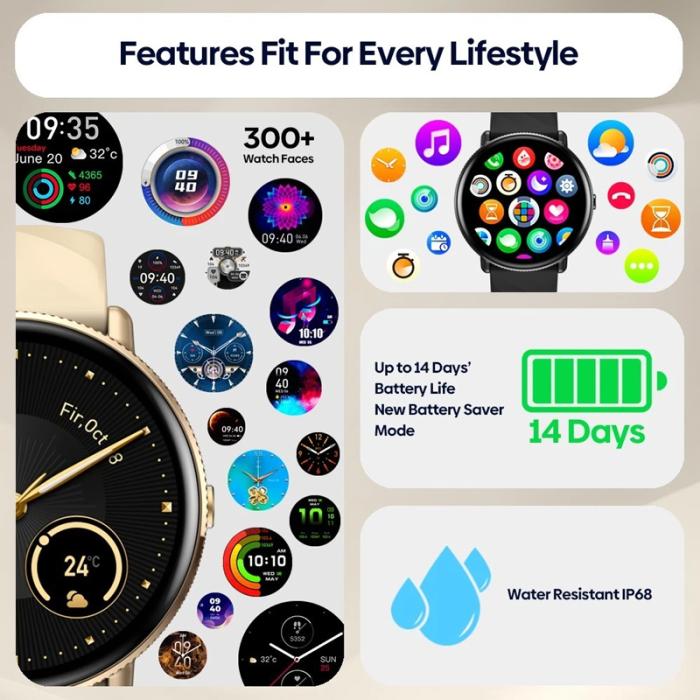 Διαθέτει πληθώρα fitness χαρακτηριστικών και αισθητήρα καρδιακών παλμών. Επιπλέον, υποστηρίζει τηλεφωνικές κλήσεις μέσω Bluetooth, απευθείας από το smartwatch.