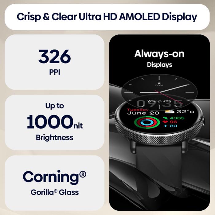Κομψό smartwatch από την Zeblaze με εξαιρετικά ανθεκτική κατασκευή και εντυπωσιακή έγχρωμη οθόνη αφής 1.43" AMOLED που προσφέρει την δυνατότητα να έχετε την οθόνη του smartwatch πάντα ενεργοποιημένη.